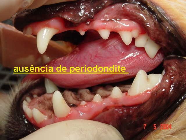 Quantas vezes você já olhou a boca do seu animal de estimação? Estudos revelam que 85% dos cães e gatos acima dos 3 anos de idade apresentam a doença periodontal, considerada a doença mais comum entre os animais de companhia. Tudo começa com a placa bacteriana, pois os cães ainda não tem o hábito de escovação de dentes. Após a formação da placa bacteriana ocorre acumulo de sais de cálcio nessas placas que vão ficando cada vez mais endurecidas formando o cálculo dentário (chamado de tártaro). Se elas não forem removidas, como fazemos diariamente ao passar o fio dental e escovar os dentes as bactérias presentes começam a causar inflamação. Consequentemente ocorre gengivite, tártaro subgengival, periodontite e muitas vezes perda de dentes devido a destruição das estruturas de sustentação dos mesmos. Porém o prejuízo não para por aqui! Esta é uma lesão infecciosa, logo, as bactérias podem penetrar a corrente sanguínea, espalhando-se pelo corpo do animal e causando lesões em órgãos vitais como coração, rins e fígado. Um exame rotineiro avalia seu cão para esse problema. Cães sem dentes não mordem, não mastigam corretamente e adoecem. É aconselhável uma avaliação periódica (1 vez por ano) para remover o tártaro existente.
