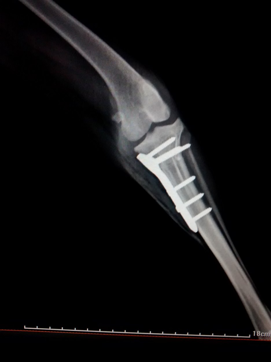 A Ruptura de ligamento cruzado cranial (RLCcr) é uma afecção muito comum nos cães, este caso refere-se a um cão macho mancando de forma aguda que ao exame foi feito o diagnostico de RLCcr. Optou-se por sua correção cirúrgica utilizando a ténica de TPLO, mundialmente conhecida pela sua alta eficácia.