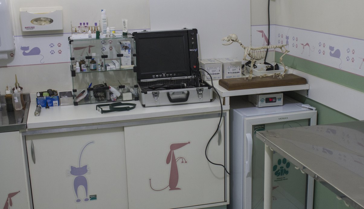 Local onde se faz as explorações clínicas e os exames complementares como otoscopia, lâmpada de Wood, exame de fezes, raspado de pele,coleta de material para exames laboratoriais complementares etc.